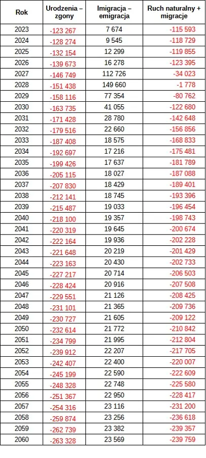 Większość zachodnioeuropejskich polityków z partii rządzących twierdzi, że w sytuacji depopulacji i starzenia się ludności europejskiej konieczny, z powodów gospodarczych, konieczny stał się "import siły roboczej" spoza Europy. Przypatrzmy się więc prognozie ludności Polski, która - zgodnie z zalecaniami ONZ zawartymi w dokumencie pt. "Recommendations on Communicating Population Projections" z 2018 roku - została przygotowana przez Główny Urząd Statystyczny (GUS) na lata 2023-2060. Ma na celu aktualizację wyników opracowania " Prognoza ludności na lata 2014-2050".